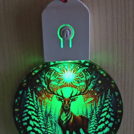 This LED light up acrylic Christmas tree bauble ornament is a beautifully crafted decoration perfect for the festive season. Made from durable acrylic material, this ornament features a design that illuminates with LED lights, adding a touch of magic to your Christmas tree. The Stag/Reindeer design adds a touch of faith and tradition into your home during the holidays.