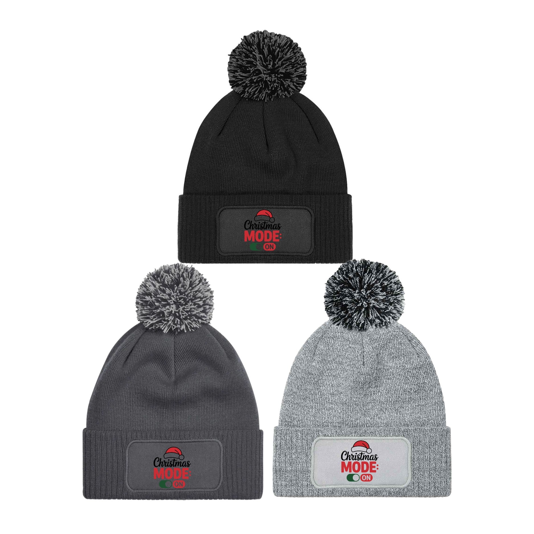 Christmas Mode On Beanie Knitted Winter Bobble Hat Unisex Festive Seasonal