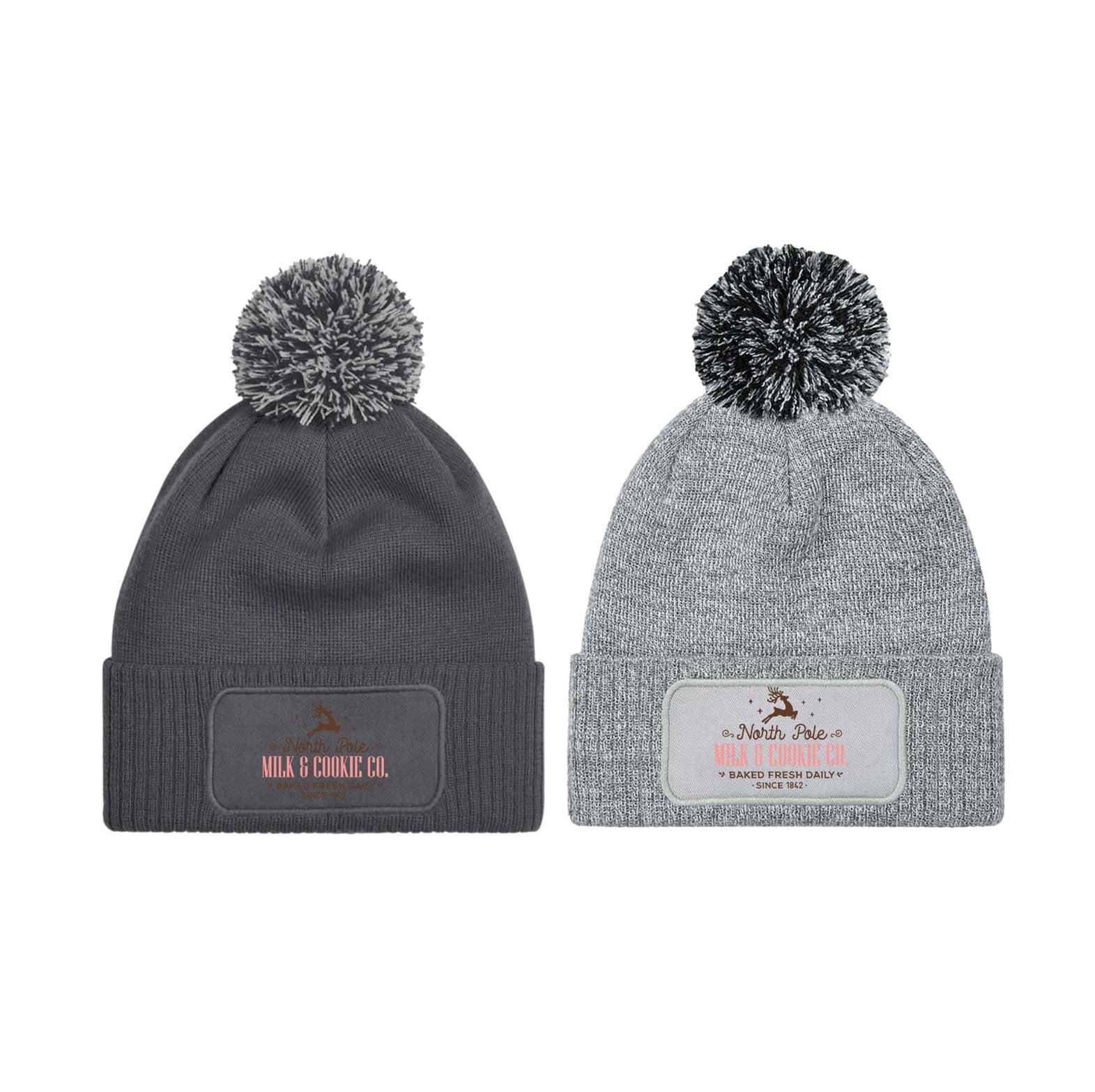 North Pole Milk and Cookies Co. Beanie Knitted Winter Bobble Hat Unisex Christmas